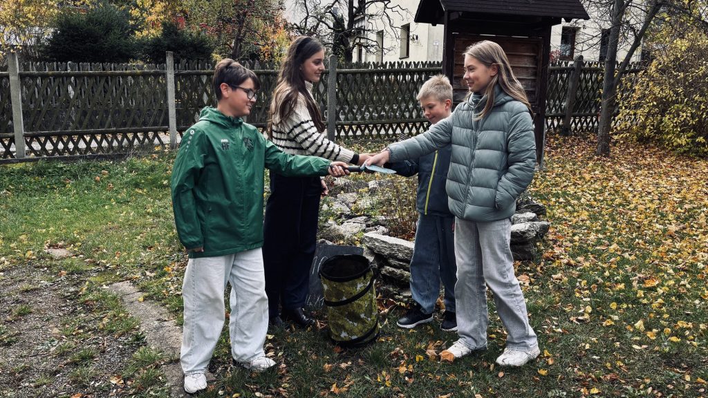Am 24. Oktober 2025 übergaben die Klassensprecher der 7a, Mariia M. und Arvid F., die Betreuung ihrer Klassenbeete an Kurt Z. und Ida Z., die vertretend für die Klasse 5a zur Stelle waren.