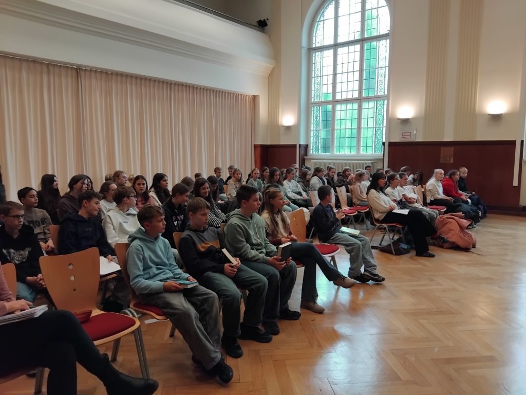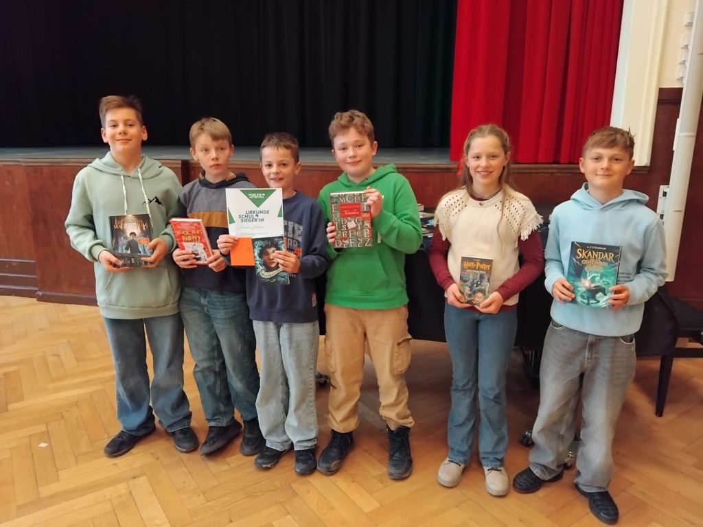Nachdem in den letzten Tagen vor dem Wettbewerb eine Vorauswahl in den einzelnen sechsten Klassen stattgefunden hatte, traten zum Wettbewerb jeweils zwei Schüler aus jeder Klasse zum Vorlesen an. Aus der Klasse 6a waren das Johann und Konstantin. Die Klasse 6b schickte Paula und Luke ins Rennen. Aus der 6c gingen Max und Simon an den Start.